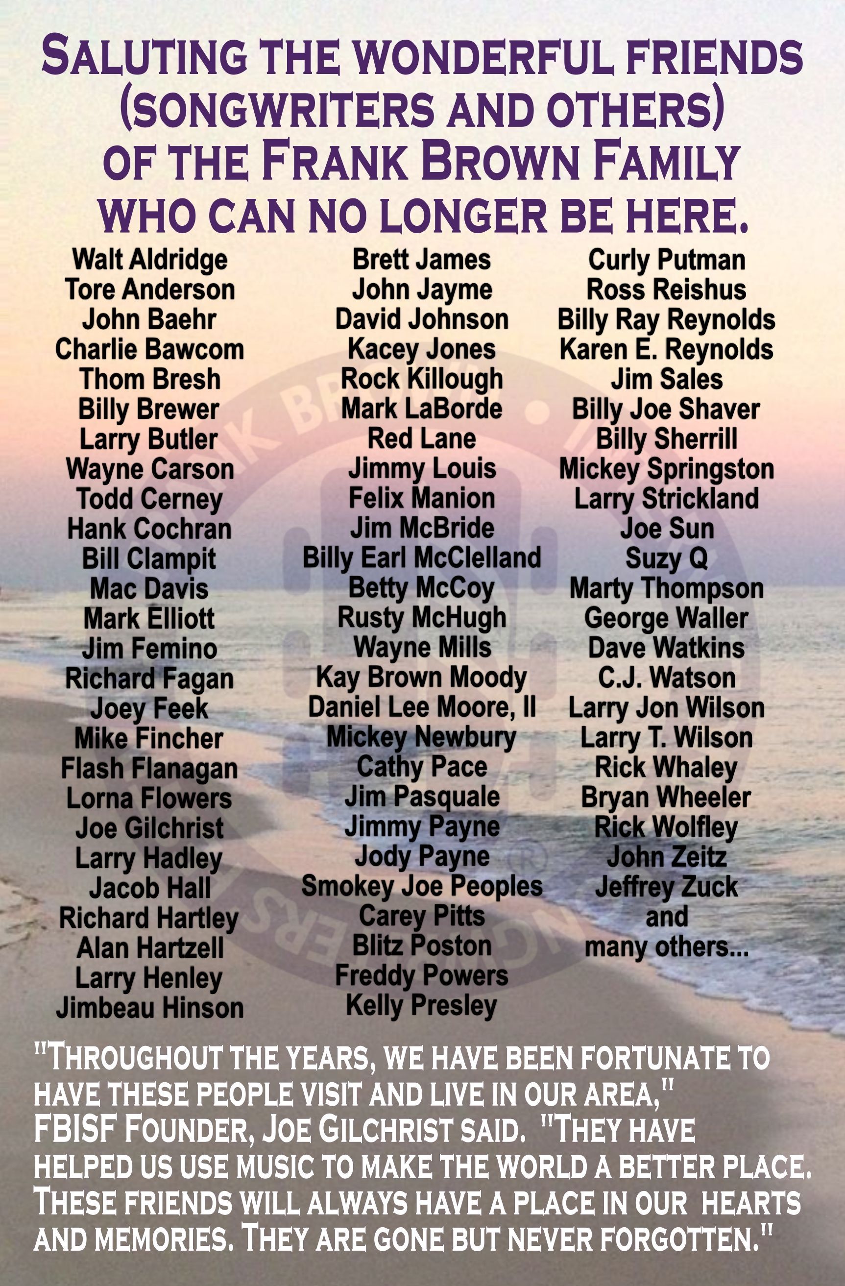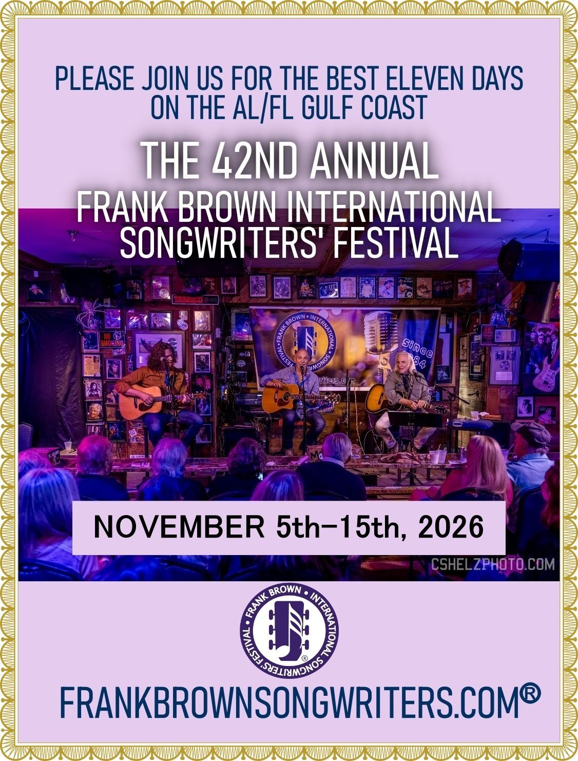 DISCOUNTS ARE ADDED FOR FRANK BROWN SONGWRITERS ATTENDEES AS WE RECEIVE THEM. IF YOUR CHOICE OF LODGING SPONSOR IS NOT LISTED OR OFFERING A DISCOUNT, PLEASE ASK THEM TO CONTACT US WITH A CODE SO THAT WE CAN ADD IT IF THEY ARE WILLING TO OFFER A DISCOUNT FOR ATTENDEES.